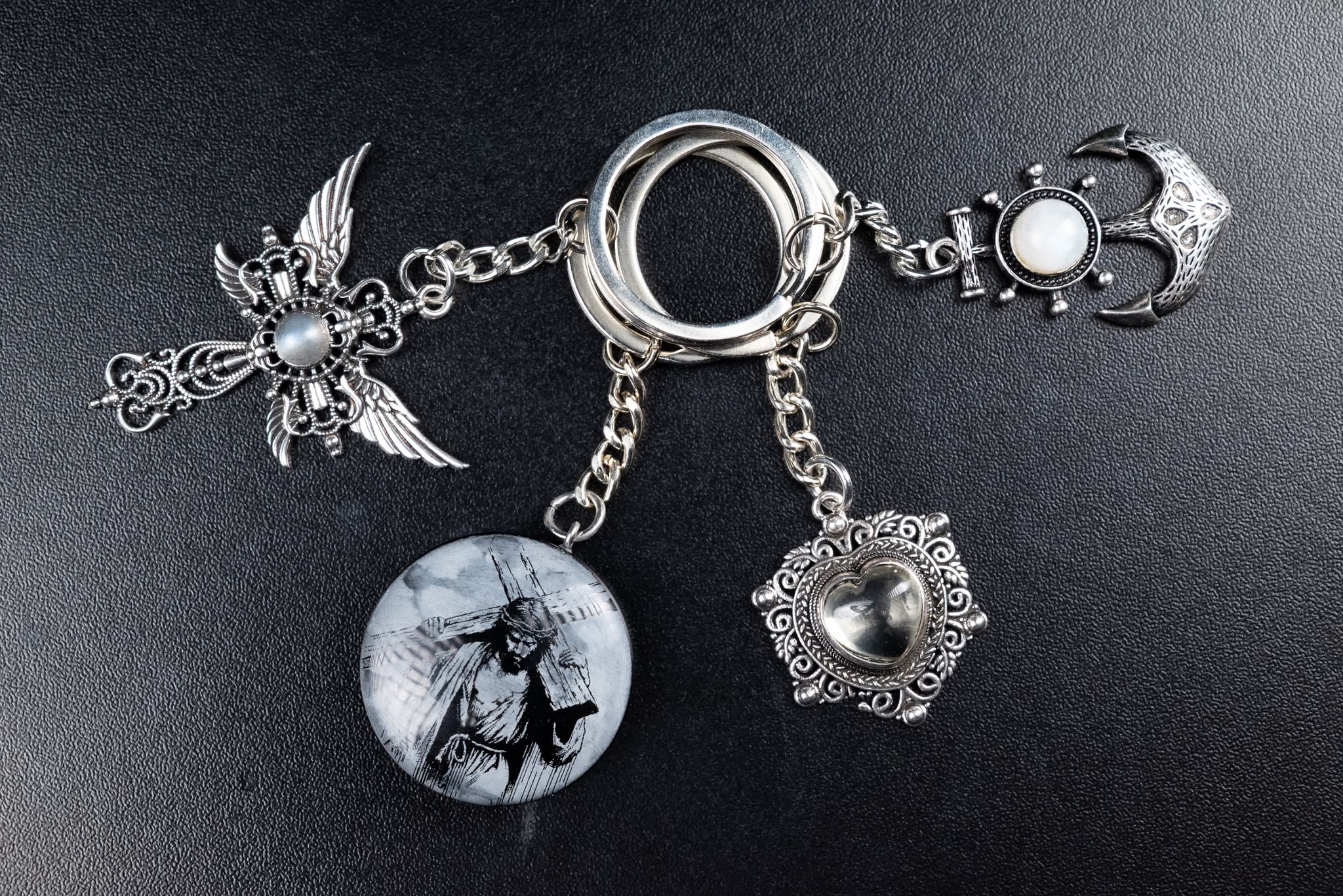 BLACK OBSIDIAN WITH JESUS CHRIST IMAGE KEYCHAIN