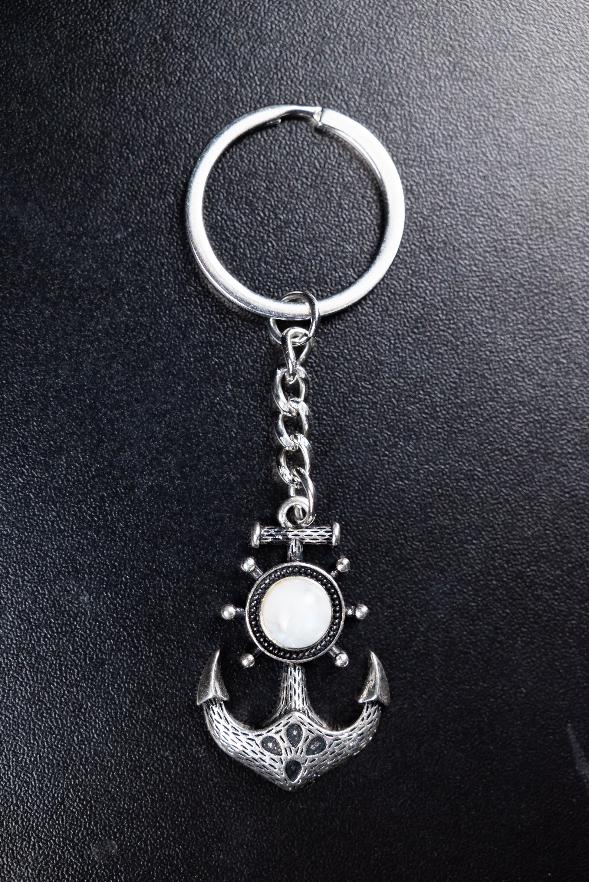 This elegant keychain is made from durable stainless steel and features a smooth natural Moonstone set in a beautifully detailed anchor design. It is strong long lasting and perfect for everyday use.