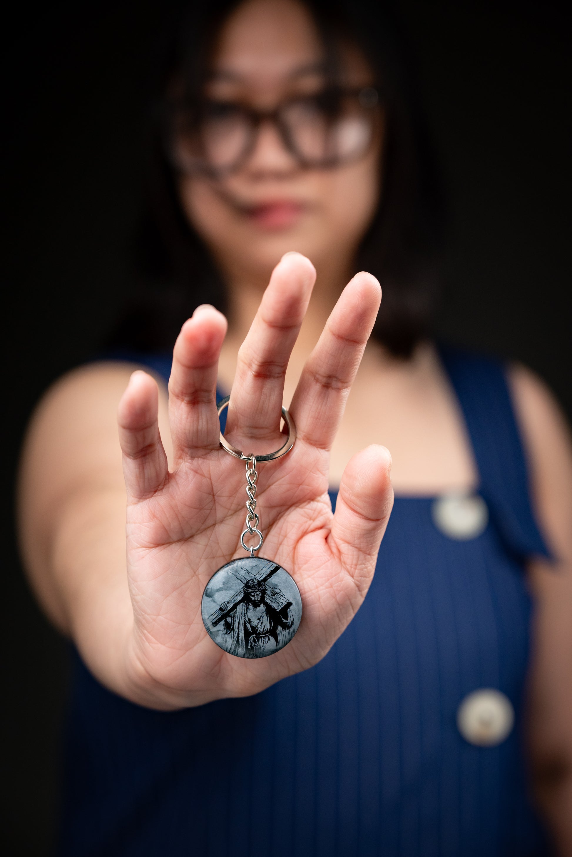 This Black Obsidian with Jesus Christ Image Keychain is a strong daily reminder that you are protected guided and never alone.