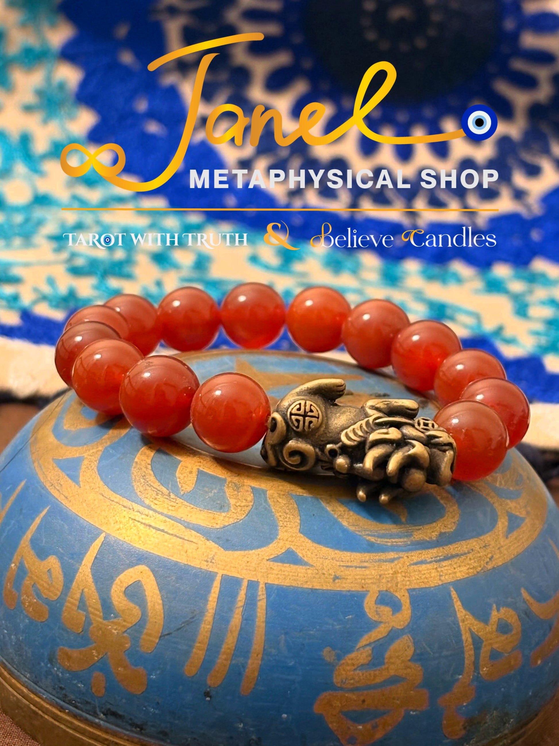 RED CARNELIAN BRACELET WITH PIXIU (DRAGON)
