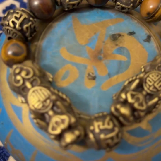 TIGER'S EYE & DOUBLE PIXIU (DRAGON) BRACELET